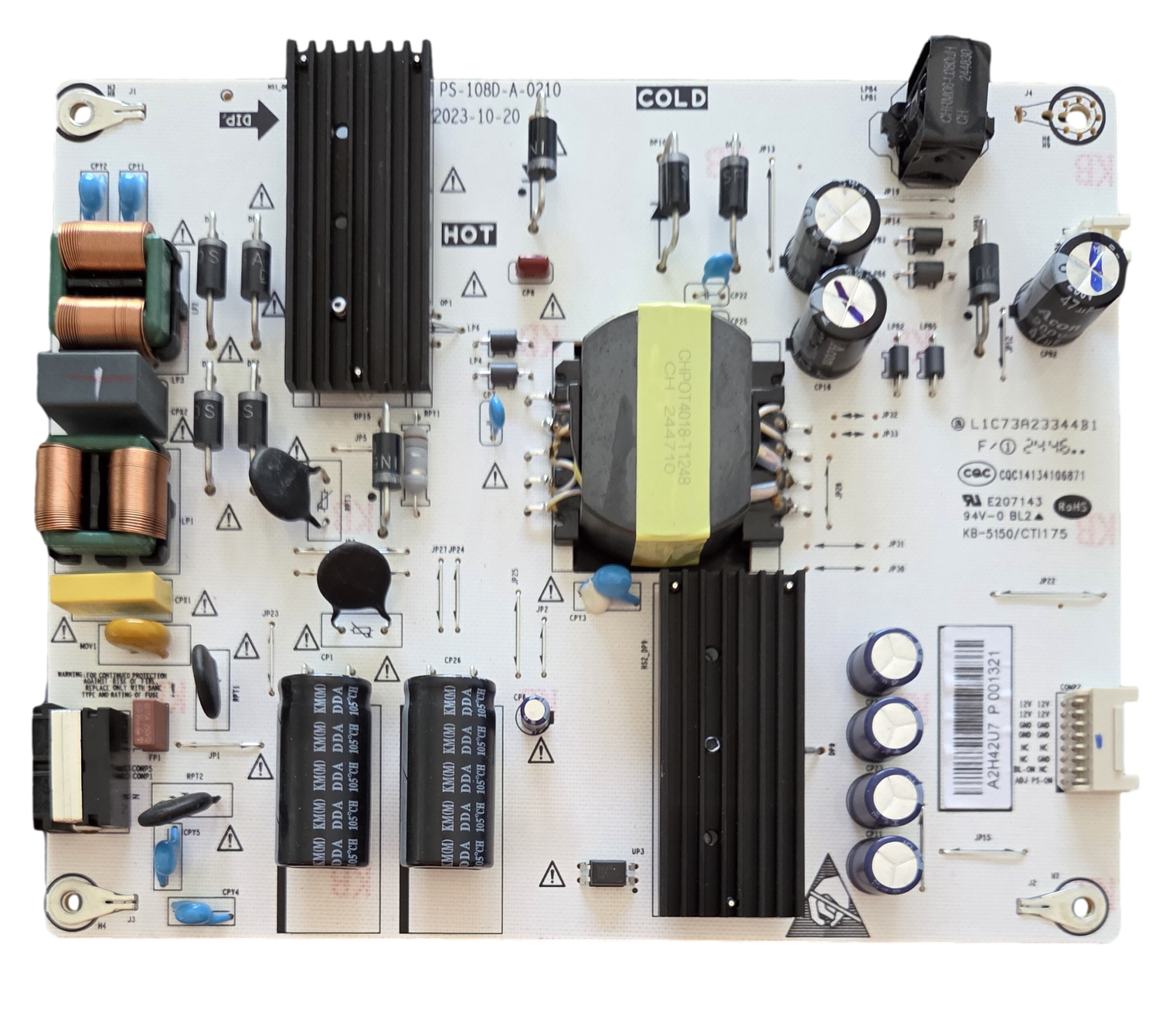 PS-108D-A-0210 Onn Power Supply, A2H42U7, 001321, 100012585